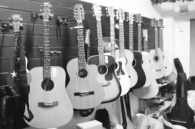 十几把吉他挂在一侧的墙壁上,角落里堆放着几只被敲扁的油漆桶,架子鼓、谱架、调音台等“音乐装备”塞满空地。陈汉让和队友在胜古家园1号楼B座的地下停车场租了一间约20平方米的“工作室”,每月1300元的租金由三人平摊,除了招收学员教授吉他,这里也是乐队排练的场地。不过由于正值冬季,天气寒冷无法在室外进行演出,目前“桶子鼓”的乐队表演已经暂告段落,队员们开始在地铁中各自开唱。