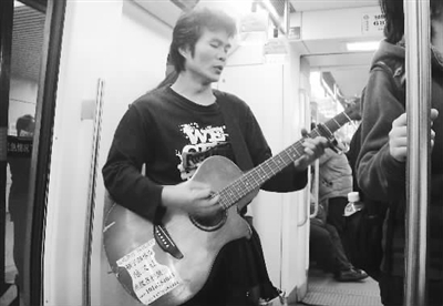 “看那红楼梦,里面的故事情节。想想现在的爱情,有多少离别……所以我等呀等呀等,等天上能否掉下个林妹妹,我的心儿就不会,再感到那么伤悲……”在北京地铁10号线的一节车厢里,一个沧桑沙哑的男声让很多乘客停止了交谈,不约而同地寻着声音的方向望去。