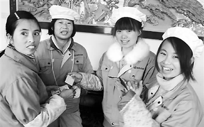 12月25日,浙江临安华兴羽绒公司的贵州籍农民工杨开方等人拿到了临安市总工会派送的爱心车票后,高兴得合不拢嘴。