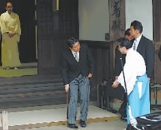 12月26日,在日本东京,不顾国际社会强烈反对,日本首相安倍晋三(中)悍然参拜供奉有二战甲级战犯的靖国神社。