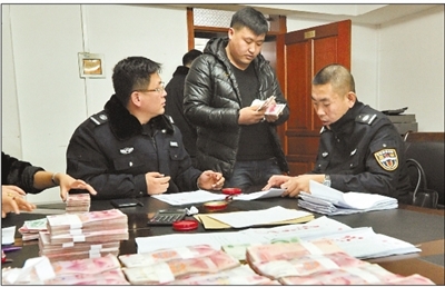 在位于长春的农民工管理服务中心,一位农民工(右二)在清点领到的工资(12月23日摄)。为了解决拖欠农民工工资问题,2013年吉林省试点在长春、吉林两市建立隶属于劳动保障监察总队的农民工管理服务中心,探索通过对农民工进行实名制登记管理,源头分离工程款和工资款等方式,从制度上遏制农民工讨薪难问题。该管理服务中心2013年为3.97万名农民工解决拖欠工资3.7亿元。试点工作将逐步向省内各地推广。 新华社记者 张楠 摄