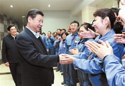 热电厂当班职工听说总书记来了,纷纷围上来向总书记问好,习近平同他们亲切握手。他深情地说,我来看望大家,就是向你们并通过你们向全国生产一线的干部职工致以新年的问候,向在节日期间坚守工作岗位的各条战线的同志们表示衷心的感谢。你们从事送温暖、送光明的工作,很光荣,很有意义。发展新技术、发展绿色能源,是节能减排、治理大气污染的必要措施。我们要加大投入,有定力、有耐心地把面临的问题解决好。
