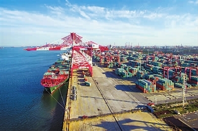 截至12月29日18点,2013年天津港货物吞吐量突破5亿吨,集装箱吞吐量突破1300万标准箱,成为我国北方第一个5亿吨港口。这是继2010年货物吞吐量实现4亿吨之后,天津港用三年时间,实现了跨越亿吨的新台阶。 新华社发(薛力强 摄)