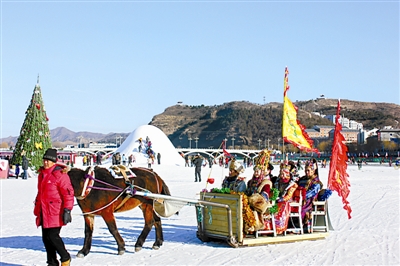 新年来临之际,人们在冰雪世界中游玩。承德市双桥区积极推进经济发展方式由资源型向旅游文化型转变,依托避暑山庄及周围寺庙等文化旅游资源,打造出冰雪嘉年华、摄影、新年祈福等系列文化活动,推动四季旅游的发展。王富国 摄/CFP