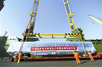 当日,我国城际动车组最大一笔出口订单首列车辆在中国南车四方股份公司下线,并从青岛港装船运往阿根廷,预计于2月10日抵达。