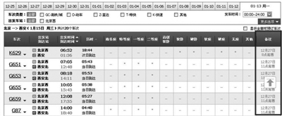 当想买的票还未起售时,显示栏最右侧的备注会给出车票的起售时间;当想买的车票已经起售时,显示栏会标出每趟车各种座位、铺位的余票数量。