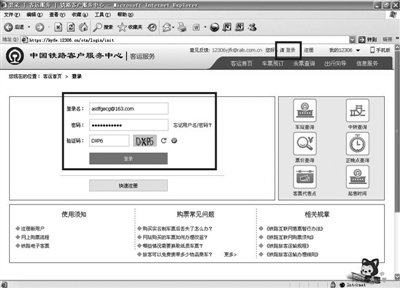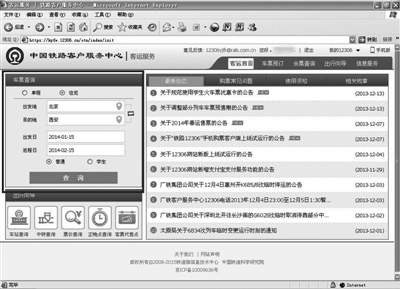 点击页面左侧的新版售票,就进入了购票页面。购买车票主要分为注册登录、车票查询、车票预定、在线支付这四个步骤。