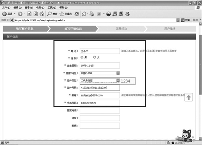 在此页面中,按要求填写必要的个人信息,包括姓名、性别、出生日期、身份证号码、个人邮箱等,填完点击下一步即注册成功。注册成功后,网站将立即给提供的电子邮件信箱发送激活邮件(发件人为12306@rails.com.cn),登录提供的邮箱收取激活邮件,并按提示激活用户账号后,就可登录个人账号进行下面的步骤。