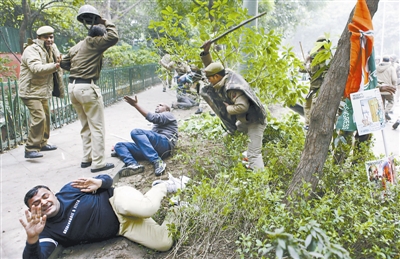 印度民众抗议腐败 总理府前惨遭棒打
