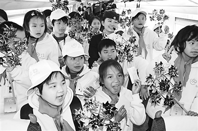 “爸爸妈妈都在花都打工,已经有好长好长时间没有回家了,我好想他们”。郑诗怡是新田县陶岭乡陶岭中心校六年级的学生,她说话的声音很小,眼泪止不住地流。包括郑诗怡在内的这些留守儿童来到广州后,与花都区的小学生们开展联谊活动,并与远在广州打工的父母一起游览广州的名胜古迹。