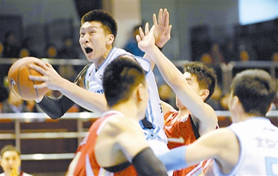 1月8日晚,在CBA联赛第22轮比赛中,北京队在主场以115比87轻松战胜八一队。图为北京队孙悦持球进攻。本报记者 许之丰 摄