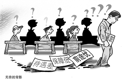 记者调查发现,由于工资待遇低、无社会保障等,造成民办打工子弟学校教师普遍产生“不安定感”,“每个人都想着走,大多都是抱着走一步算一步的迷茫心态。这里仅仅是一个跳板,也不是没有提高自身业务能力的想法。”