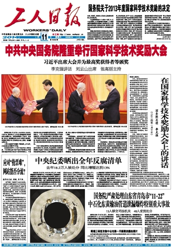 中共中央政治局委员、国务院副总理刘延东在会上宣读了《国务院关于2013年度国家科学技术奖励的决定》。(决定全文另发)