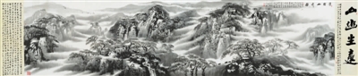 近日,山幽尘远——宋斌艺术中国展暨新作在北京吴东魁艺术馆展出,展览是画家宋斌践行“让书画走进寻常百姓家”理念的实践活动,也是宋斌中国画作品全国巡展的重要一站。展出画家近年来的精品力作68幅。长6米,宽1.2米的新作“山幽尘远”,以恢弘的气势描绘了北方的雾凇山水,近景松树枝干挺拔枝梢挂霜,冰雪初融溪水蜿蜒缓缓,农家小院,远牧牛归来,中景云雾缭绕阶梯升腾,亭台楼阁,如梦如歌飘渺虚幻,众鸟高飞空灵幽远,远景山雾飘远霜感十足。此图此情此景让人有远离红尘,远离喧嚣“山幽尘远”之感。