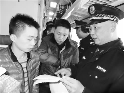 图为1月8日铁警在T49/50卧铺车厢开展旅客票源调查时的情形。