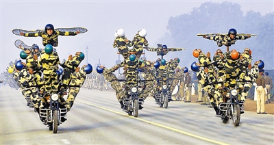 当地时间1月10日,在印度首都新德里,准备参加国庆日阅兵仪式的印度士兵正在进行彩排。印度即将在1月26日迎来国庆日。阿健 供图