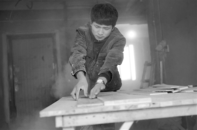 2013年12月20日,郑州,迟磊在尘土弥漫的环境下干活儿。