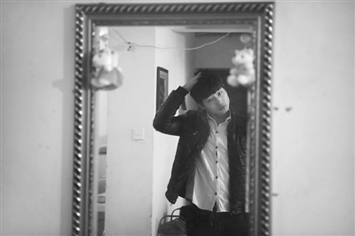 2013年12月25日,郑州,每次出门,特别讲究形象的迟磊总会对着镜子修饰一番。