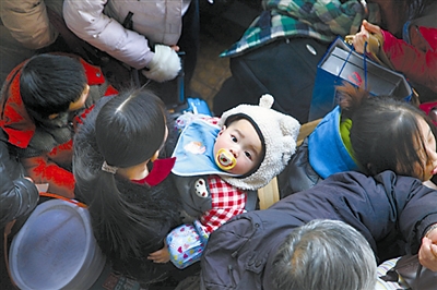 1月16日,北京西站站台上,一岁多的婴儿在母亲的怀抱中踏上人生的第一段旅途。2014年春运于当日拉开帷幕,持续至2月24日共40天,其中,节前15天,节后25天。
