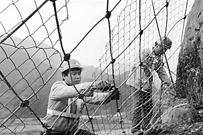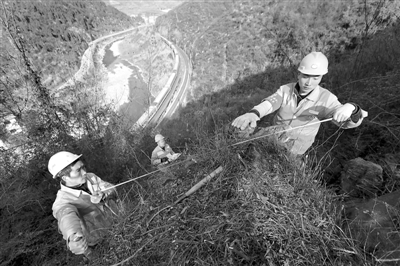 他们就像“蜘蛛侠”一样,常年担负着宝成铁路四川境内广元至德阳区间260余公里范围内,150多座山头的搜山扫石检查及危石整治工作,爬山岩、攀绝壁,探险情、除危石、修护网,严防危石坠落影响铁路运输和旅客安全。 张智勇 摄影报道
