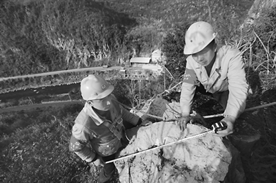 宝成铁路线沿四川境内剑门山脉而行,其沿线山峰如削、怪石嶙峋、地质灾害频发。为确保春运期间旅客列车运行畅通,成都铁路局绵阳工务段竹园坝危石整治工区的18名危石整治工兵分两路,加班加点排查和处理危石隐患。