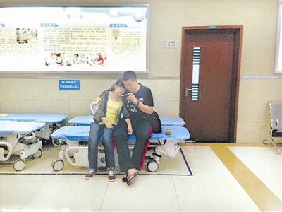 2013年9月7日,北京某医院大厅,等待看病的一对年轻人用手机看视频。