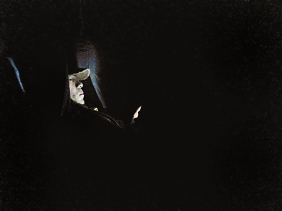 2013年10月11日,在开往北京的一大巴车上,一位乘客在夜色中看手机。