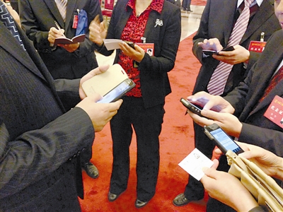 2013年10月22日,在北京人民大会堂开会的代表互留联系方式。