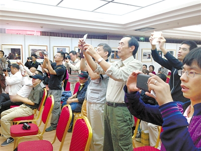 2013年9月23日,在北京一摄影活动上,来宾用手机拍照。