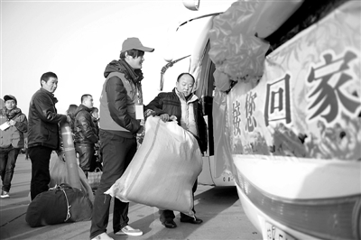 1月22日,安徽阜阳火车站,返乡人员登上回家的免费大巴。当日,安徽省阜阳市在阜阳火车站启动“接您回家”活动。据悉,在1月22日至28日期间,阜阳市下辖县(市)将组织大巴专车,从阜阳火车站把返乡农民工免费接回家过年。阜阳是中国最大的农民工输出地之一,280多万在外务工人员,占全国农民工总量的1%。 张娅子 摄