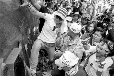 泰国示威者破坏皇家警察大楼标志