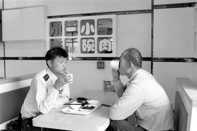 图为哈尔滨的哥在工会建立的的哥食堂就餐。