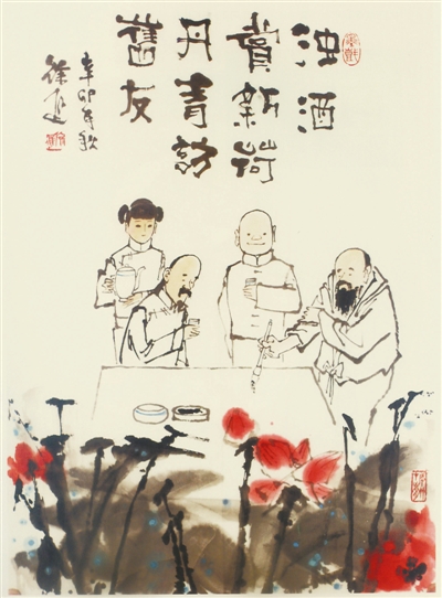 现在,人们都期待着更多胸有大意蕴的水墨漫画大家和力以扛鼎有大意境的水墨漫画佳作,这一切都需要传统继承与开拓发展的艺术自觉。我认为,中国独有的水墨漫画受着华夏文明和东方哲学的陶融,它的不重写实的“心象”观、强调人格品操的中正观和以书法入画的笔墨观都凸显其中,它表达着生活感受和人生价值。水墨漫画“内修心外益世”,通过“成教化助人伦”的社会功能,润物细无声地改造社会。水墨漫画的画面与文字能与屈原的名句“纷吾既有此内美兮,又重之以修能”的人格塑造相媲美。