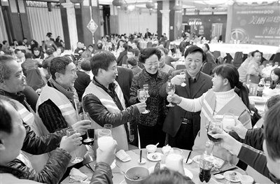 1月28日晚,福建省总工会、福州市总工会联合举办“美丽福建 幸福福州”2014留闽过年各界建设者联欢活动,为劳动者奉上一餐年夜饭。