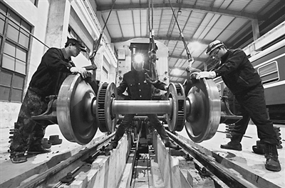 1月22日晚,南昌铁路局南昌车辆段的技术人员正在九江客技站连夜整修客车车辆轮对。自春运以来,南昌铁路局南昌车辆段从设备整修等方面着手,着重对2008辆客车及27组动车组进行了高标准的整修工作,同时实行严格的 “三级交验”制度,保障春运期间客车和动车组“零误差、零缺陷、零故障”上线运行。程江韫 胡国林 摄