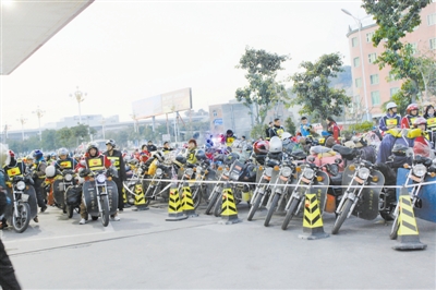 1月23日清晨,福建晋江荆山加油站,挤满了准备骑摩托车回老家过年的农民工。