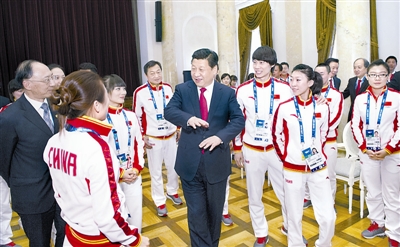 习近平的讲话使运动员、教练员、工作人员倍受鼓舞。他们纷纷表示,一定按照习近平总书记的要求,在索契赛场上全力以赴,奋勇争先,传递友谊,以最佳的竞技状态和良好的精神风貌,为国争光,不辜负习近平总书记的关心和祖国人民的期待。每一名运动员都有自己的奥运梦想。我们要把每个人的梦想汇聚起来,为实现体育强国梦、实现中国梦贡献青春和力量。