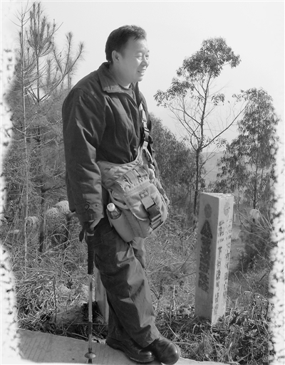 爬了半个小时,记者没怎么出汗,宝哥已经满头大汗。站在盘山公路边歇会儿,他边擦汗边自嘲:“现在不比年轻时候了,走山路容易腿软啦!累的时候真恨不得把身上所有东西都扔了。”