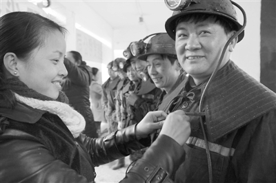 1月25日,贵州盘江精煤股份有限公司土城矿采煤四区井口,矿工会工作人员给班组职工送来了一份特殊的“年货”:垫肩。