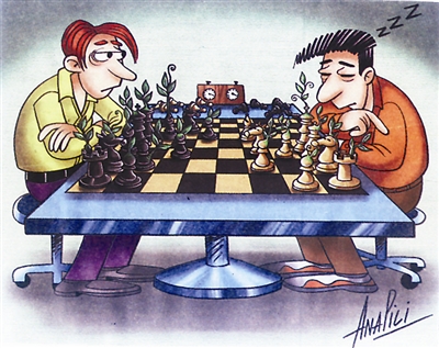 棋盘上的对峙已陷入僵局,惟恐失手彼此都久久不肯出招……时间的无限拖延并无益于阵势缓和。