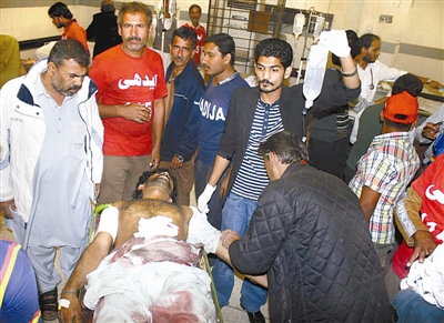 2月9日,爆炸中的伤员在巴基斯坦卡拉奇的一家医院接受治疗。