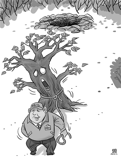 近年来,各地打造“园林城市”、“生态城市”、“森林城市”等蓝图和规划不断兴起,其中一个趋势是,把农村、山区里成千上万的大树、古树连根挖起,“绑架”进城。对城市来说,“瞬间”拥有参天大树而不需要从小树苗起慢慢培植,着实省力不少,可这种绿了城市、秃了山村的“移植”能算是真正的绿化和保护生态吗?十年树木,一些人不要太急功近利。如此走捷径,太折腾古树了。