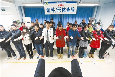 2月9日,富士康武汉园区招募中心里正在进行形体查验。