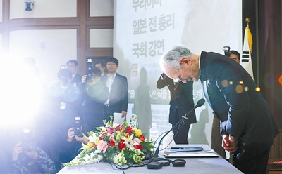 当地时间2014年2月12日,正在韩国访问的日本前首相村山富市出席在韩国国会议员会馆举行的题为“为正确的历史认知重树韩日关系”的演讲会。CFP供图