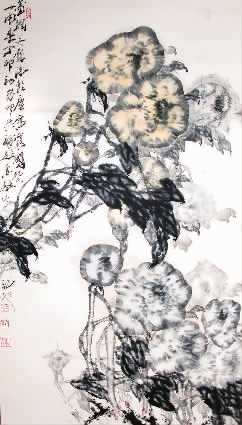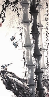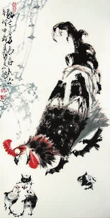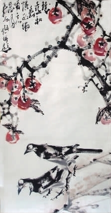 双喜和春情相依 (国画)