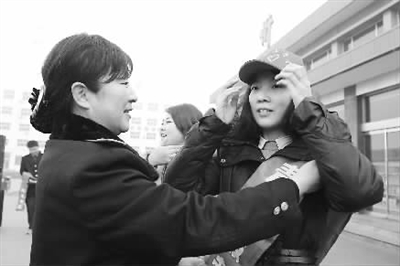在整个铁路春运阶段,青年志愿者在旅客服务工作中发挥了巨大作用,铁路职工子弟首当其冲,主动加入志愿者服务。图为太原铁路局忻州站客运职工王秀敏鼓励女儿参加青年志愿者活动。张卫中 摄