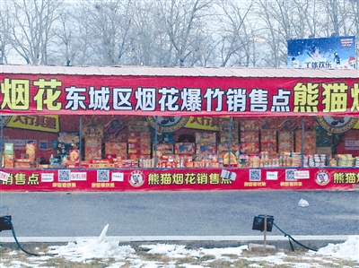北京市东城区的一处烟花爆竹销售点门可罗雀。本报记者 卢越 摄