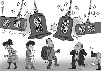 “我一回家,爸妈就开始了轮番轰炸。”在北京工作的25岁太原女孩王茹对笔者说,“不是说看谁谁谁领了证,就是谁谁谁找了个多好的男朋友,还动用了所有的亲戚劝我,好像我再不出嫁,就对不起我们家的列祖列宗,爸妈从此就要替我蒙冤一样。”