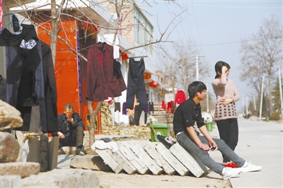 1月30日中午,一位刚从外地打工回来的年轻人一边玩着自己的苹果手机,一边和邻居聊天。