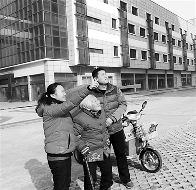 2月15日,党员志愿者程茹和徐华连骑电动三轮车带着87岁“空巢老人”张英来到她家以前的菜园、如今已是高楼林立的住宅小区。看到这里的巨大变化,张老太赞叹不已。